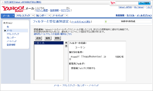 以上でコーケンツールショップからお送りするお知らせメールは[受信箱]フォルダに届くようになります。